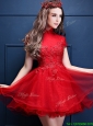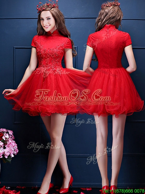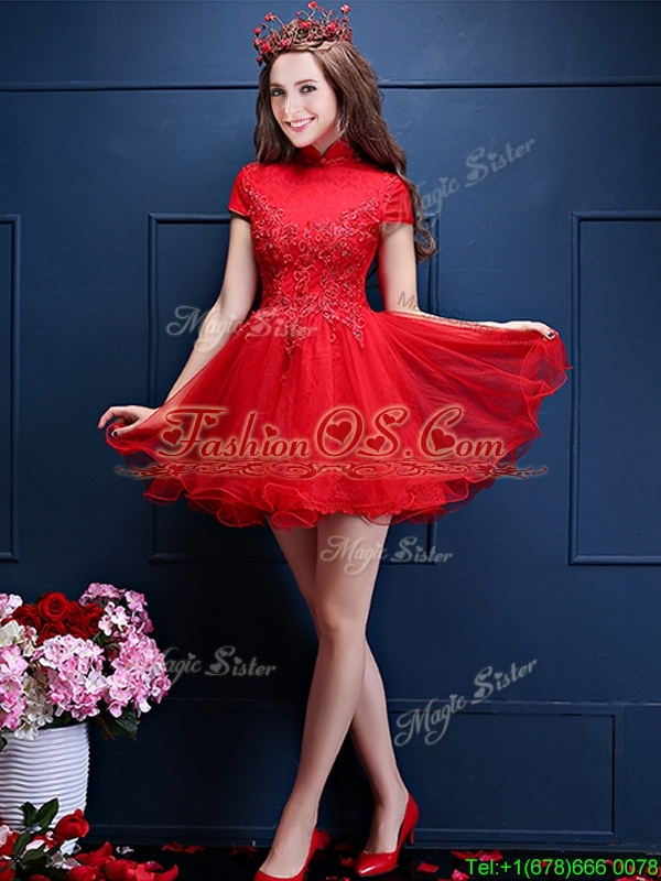 Home >  Special Occasion Dresses >  Cheap Dama Dresses > Luxurious High Neck Short Sleeves Dama Dress with Appliques and Beading