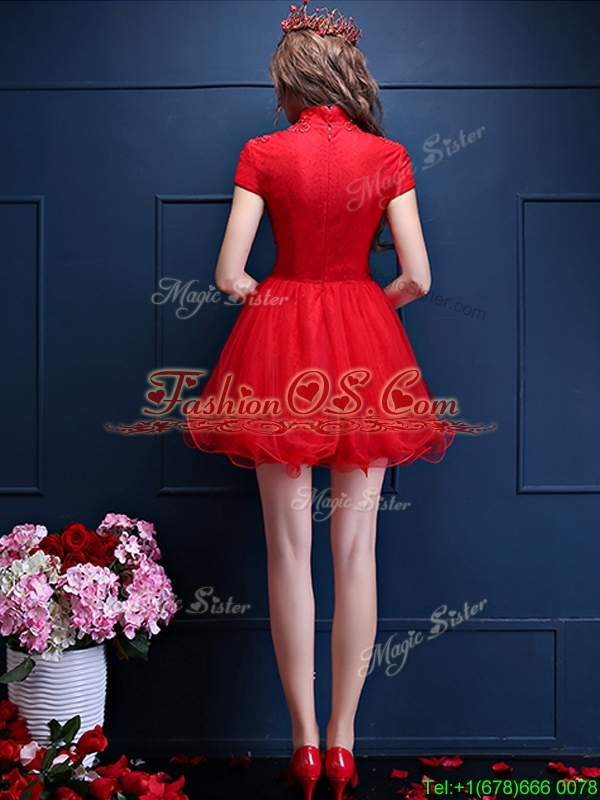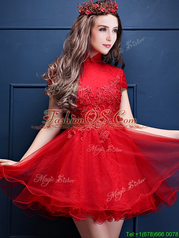 Luxurious High Neck Short Sleeves Dama Dress with Appliques and Beading