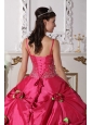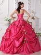 You will be eye-catching in this wonderful hot pink quinceanera dress. It features a beautiful bodice with spaghetti Straps and the mid-section heavily adorned with beadings. The skirt is gethered by fabric flowers and green leaves, making the dress more gracious.
