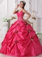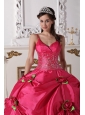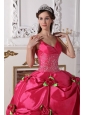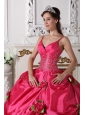 Luxurious Hot Pink Quinceanera Dress Spaghetti Straps Taffeta Beading Ball Gown