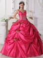 Home >  Quinceanera Dresses >  Sweet 16 Dresses > Luxurious Hot Pink Quinceanera Dress Spaghetti Straps Taffeta Beading Ball Gown