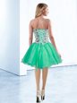 Luxurious Knee Length Turquoise Prom Evening Gown Organza Sleeveless Beading