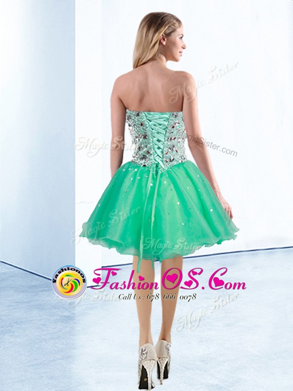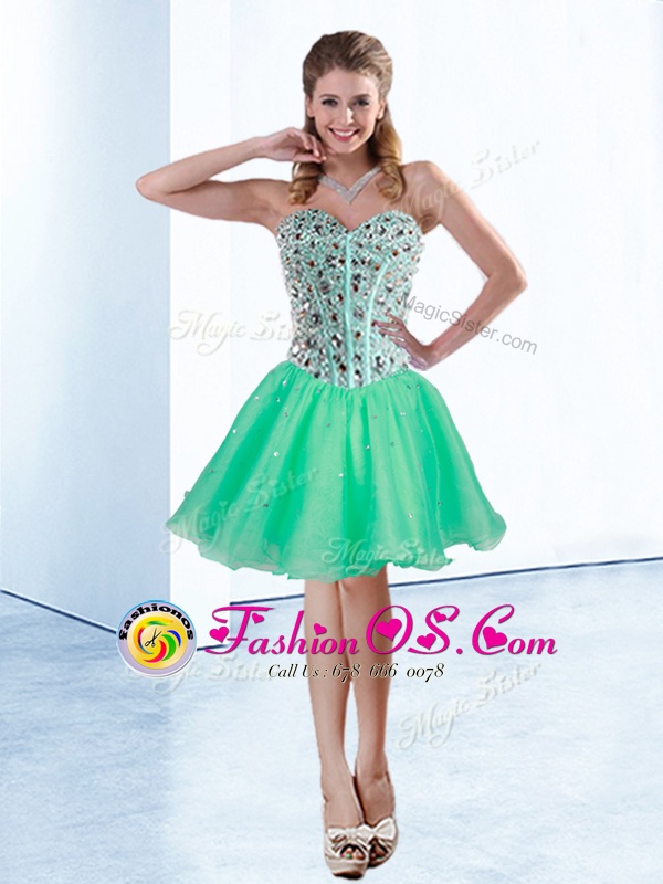 Home >  Prom Dresses >  Fashionable Prom Dresses > Luxurious Knee Length Turquoise Prom Evening Gown Organza Sleeveless Beading