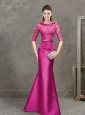 Luxurious Laced and Bowknot Bateau Evening Dress with Half Sleeves