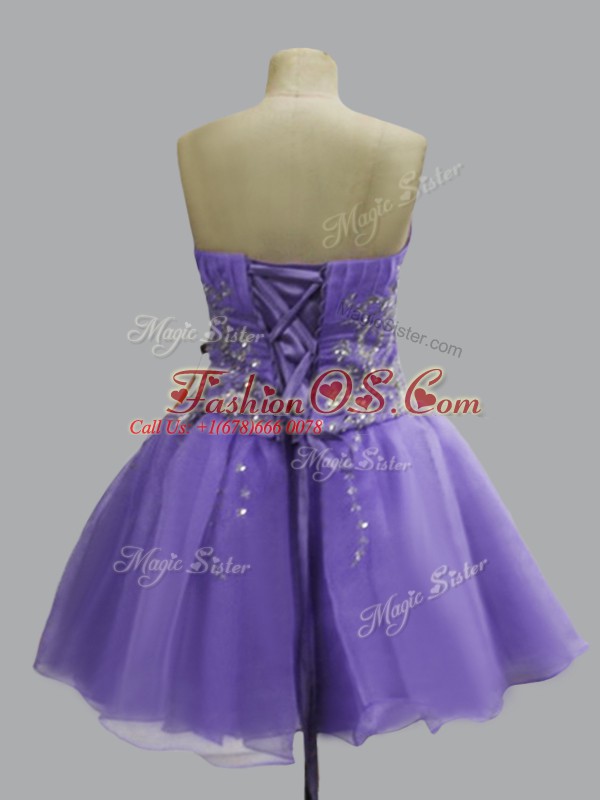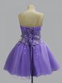 Luxurious Lavender Sleeveless Mini Length Beading Lace Up Cocktail Dresses