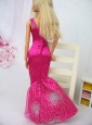 Home >  Accessories >  Quinceanera Doll Dresses > Luxurious Mermaid Asymmetrical Hot Pink Beaded Over Skirt Party Clothes Fashion Dress For Quinceanera Doll