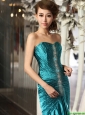Luxurious Mermaid Brush Train Beaded Prom Dresses in Teal