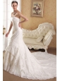 Luxurious Mermaid Strapless Chapel Train Lace Beading Wedding Dress