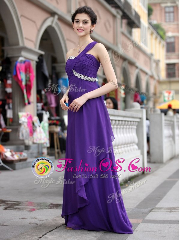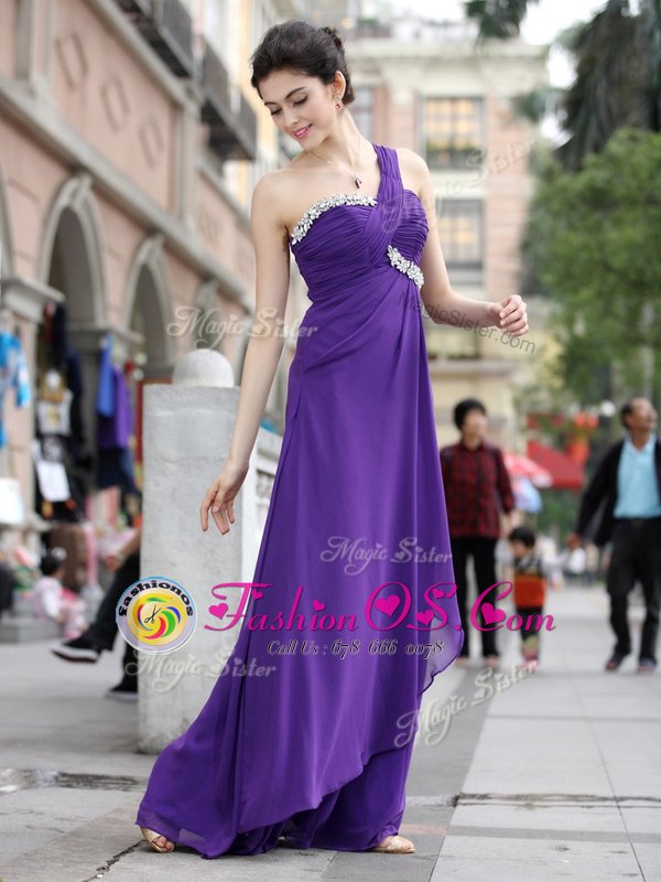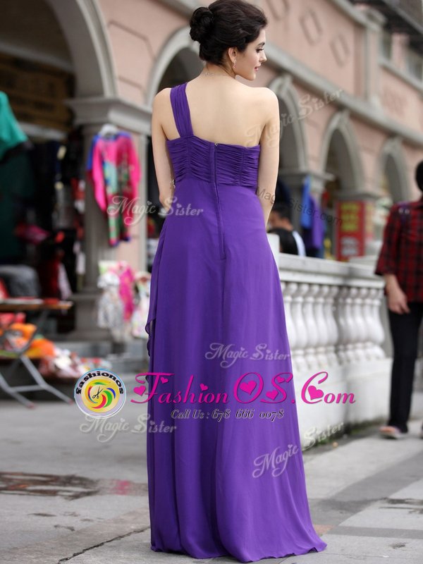 Home >  Prom Dresses >  Perfect Prom Dresses > Luxurious One Shoulder Purple Sleeveless Chiffon Zipper Prom Party Dress for Prom and Party