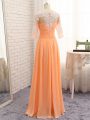 Luxurious Orange Zipper Bateau Lace and Appliques and Ruching Formal Evening Gowns Chiffon Long Sleeves