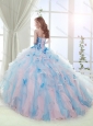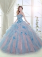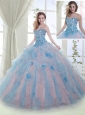 Luxurious Organza Beaded and Ruffled Quinceanera Gown in Baby Pink and Blue