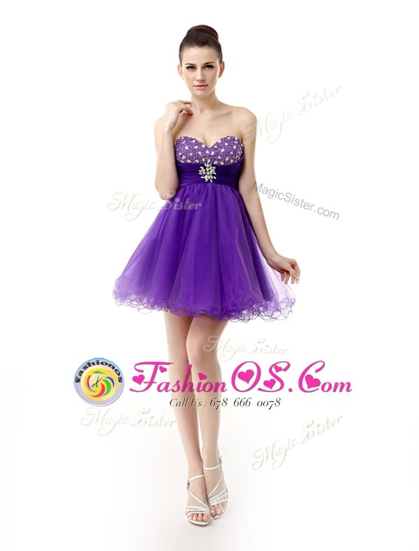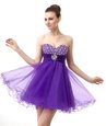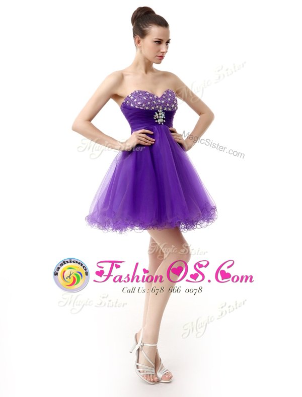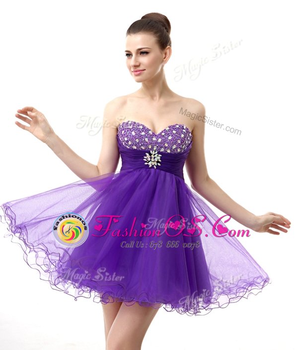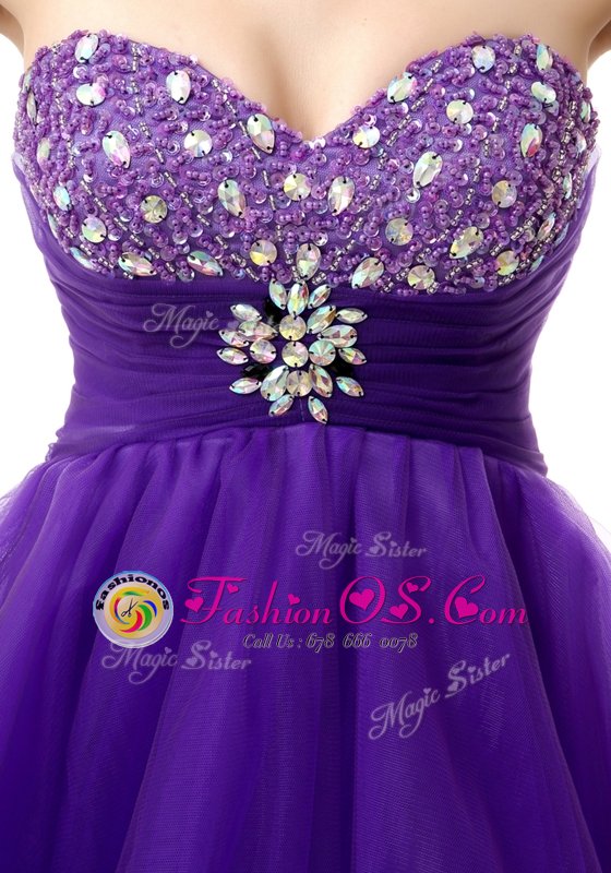 Luxurious Purple Sleeveless Knee Length Beading Zipper Prom Gown