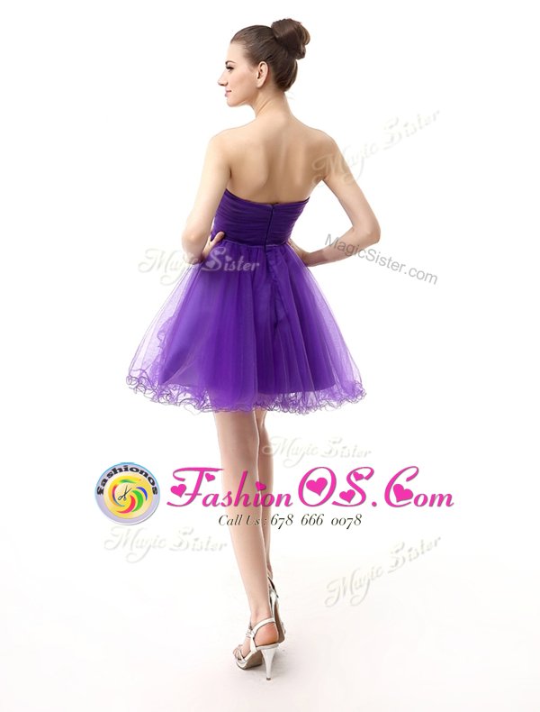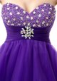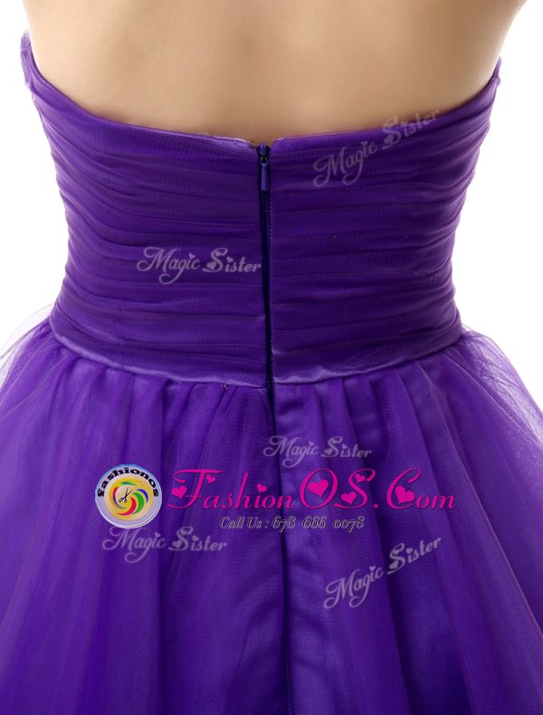 Home >  Prom Dresses >  Perfect Prom Dresses > Luxurious Purple Sleeveless Knee Length Beading Zipper Prom Gown