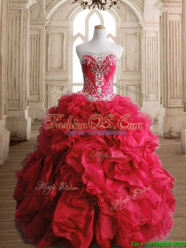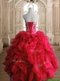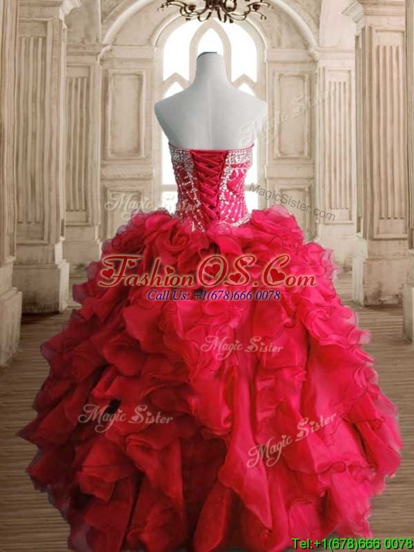Luxurious Red Big Puffy Sweet 16 Dress with Beading and Ruffles