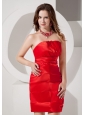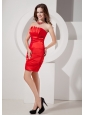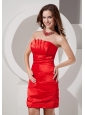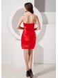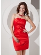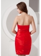Luxurious Red Column Cocktail Dress Strapless Taffeta Ruch Mini-length