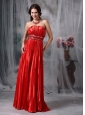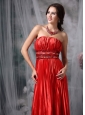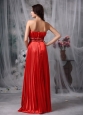 Luxurious Red Column Strapless Taffeta Pleat Beading Evening Dress Floor-length