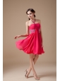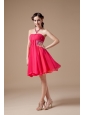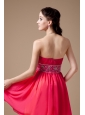 Luxurious Red Empire Strapless Short Prom   Dress Chiffon Beading Mini-length