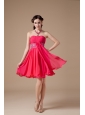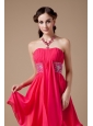 Home >  Prom Dresses >  Short Prom Dresses > Luxurious Red Empire Strapless Short Prom Dress Chiffon Beading Mini-length