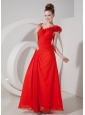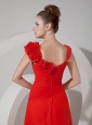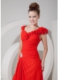Do you want to experience the feeling of being the spotlight? This red prom dress will make your dream come ture. The fitted bodice with two straps features chic handmade flowers and delicate ruches. The left strap is well decorated with full flowers. The applique on the waist echoes the flowers around the shoulder. The flowy skirt will sure dance the night away.