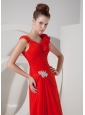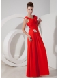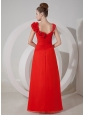 Luxurious Red Empire V-neck Floor-length Chiffon Appliques Evening Dress
