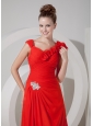 Home >  Evening Dresses > Luxurious Red Empire V-neck Floor-length Chiffon Appliques Evening Dress
