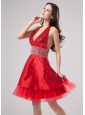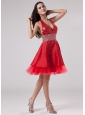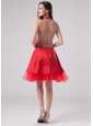 Luxurious Red Halter Prom Dress Beaded Decorate With Satin and Tulle