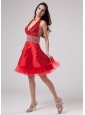 Home >  Prom Dresses >  Best Prom Dresses > Luxurious Red Halter Prom Dress Beaded Decorate With Satin and Tulle