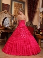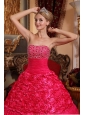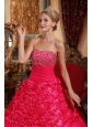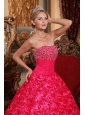 Luxurious Red Quinceanera Dress Strapless Fabric With Roling Flowers Beading A-line