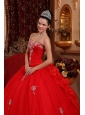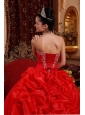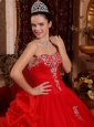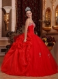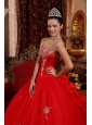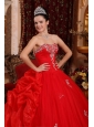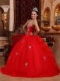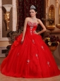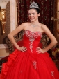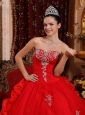 Luxurious Red Quinceanera Dress Sweetheart Organza Appliques Ball Gown