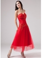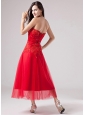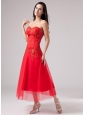 Luxurious Red Sweetheart Prom Dress Beading Appliques With Tulle