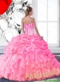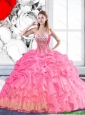 Luxurious Rose Pink Quinceanera Dress with Beading and Pick Ups For 2015 Fall
