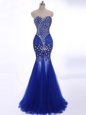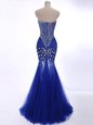 Luxurious Royal Blue Mermaid Beading Prom Dresses Zipper Tulle Sleeveless