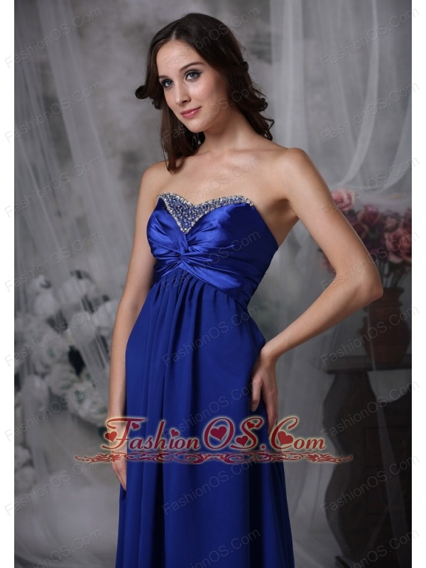 Luxurious Royal Blue Mother of the Bride Dress Empire Sweetheart Beading Chiffon and Elastic Woven Satin Floor-lengt