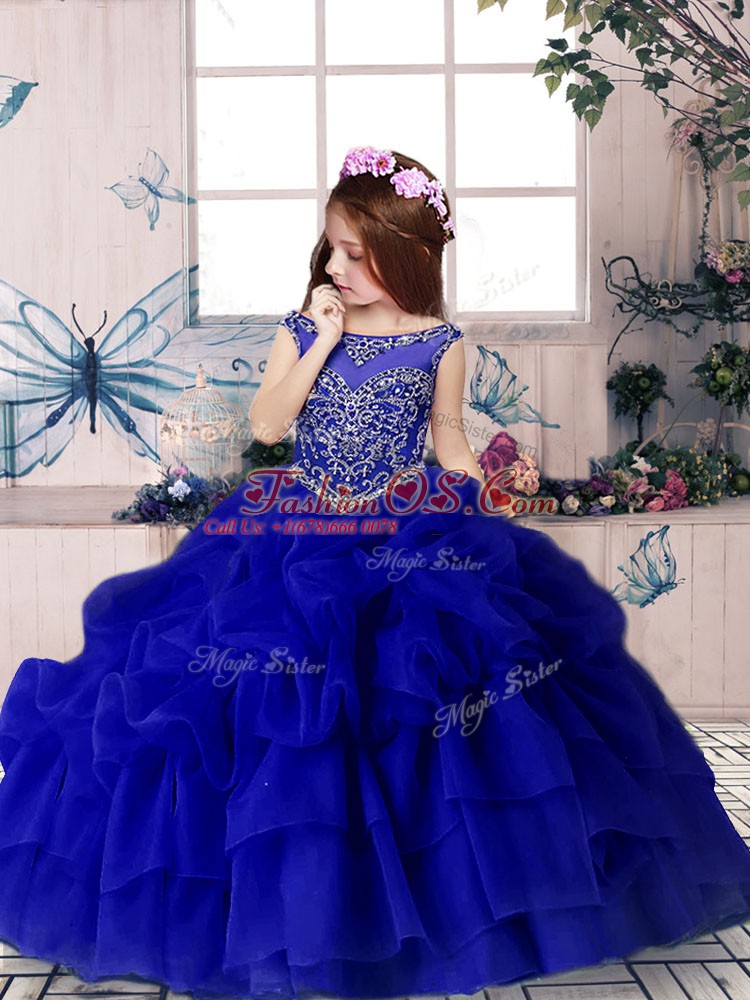 Home >  Special Occasion Dresses >  2019 Little Girl Pageant Dresses > Luxurious Royal Blue Scoop Neckline Beading and Pick Ups Little Girls Pageant Dress Wholesale Sleeveless Zipper