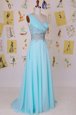 Home >  Prom Dresses >  Unique Prom Dresses > Luxurious Royal Blue Zipper Spaghetti Straps Beading Dress for Prom Satin Sleeveless