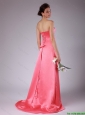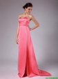 Luxurious Ruching Brush Train Prom Dresses in Watermelon Red
