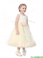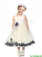 Luxurious Scoop Hand Made Flowers and Appliques Flower Girl Dress in Champagne