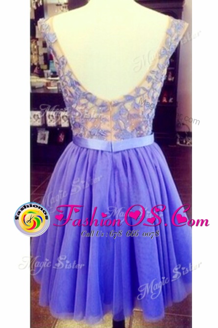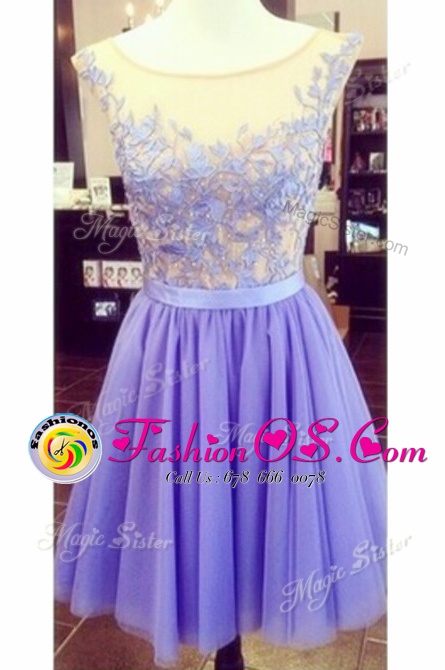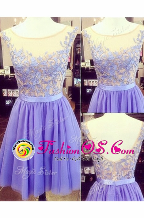 Luxurious Scoop Lace Sleeveless Appliques Zipper Dress for Prom