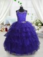 Home >  Special Occasion Dresses >  Little Girl Pageant Dresses > Luxurious Scoop Navy Blue Sleeveless Beading and Ruffled Layers Floor Length Pageant Gowns For Girls
