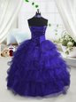 Luxurious Scoop Navy Blue Sleeveless Beading and Ruffled Layers Floor Length Pageant Gowns For Girls