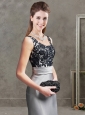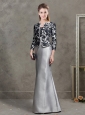 Luxurious Scoop Silver Long Evening Dress in Satin and Lace