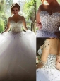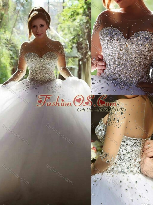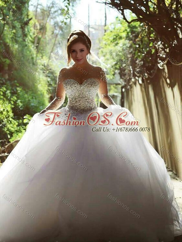 Luxurious See Through Beaded Bodice Wedding Dress with Long Sleeves