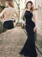 Luxurious See Through Mermaid Prom Dress with Beaded Long Sleeves
