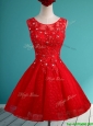 Luxurious See Through Scoop Short Prom Dresses with Beading and Appliques