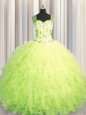 Home >  Quinceanera Dresses >  New Arrival Quinceanera Dresses > Luxurious See Through Zipper Up Sleeveless Zipper Floor Length Beading and Ruffles 15th Birthday Dress