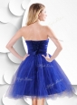 Luxurious Short Peacock Blue Prom Dress with Beading and Appliques