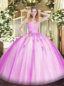 Luxurious Sleeveless Tulle Floor Length Lace Up Quinceanera Gown in Lilac with Beading and Appliques