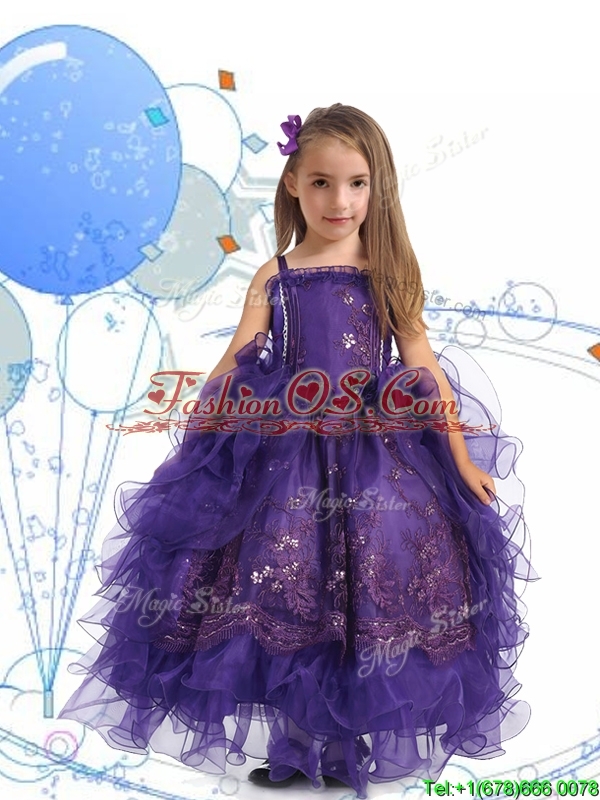 Luxurious Spaghetti Straps Little Girl Pageant Dress with Lace and Ruffled Layers
