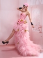 Home >  Prom Dresses >  Discount Prom Dresses > Luxurious Spaghetti Straps Pink High-low Tulle Empire Prom Dress