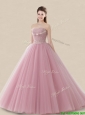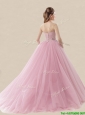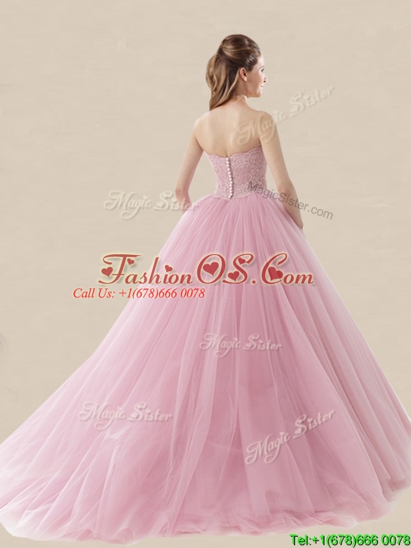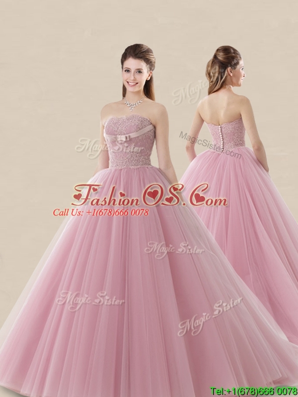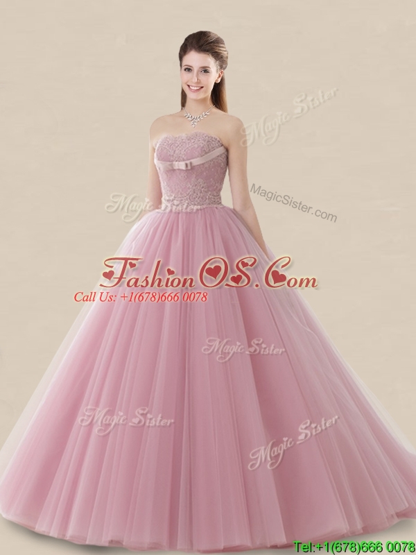 Luxurious Strapless Brush Train Sweet 16 Dress with Lace and Bowknot